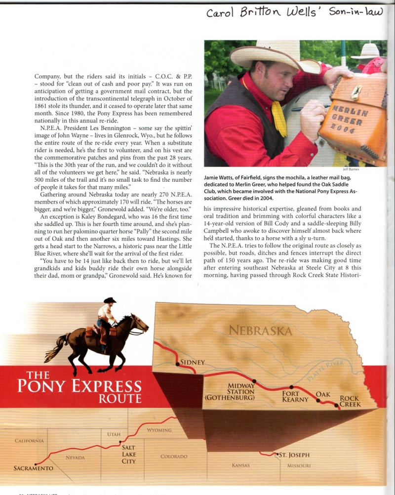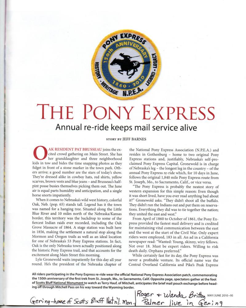 Pony Express Article from